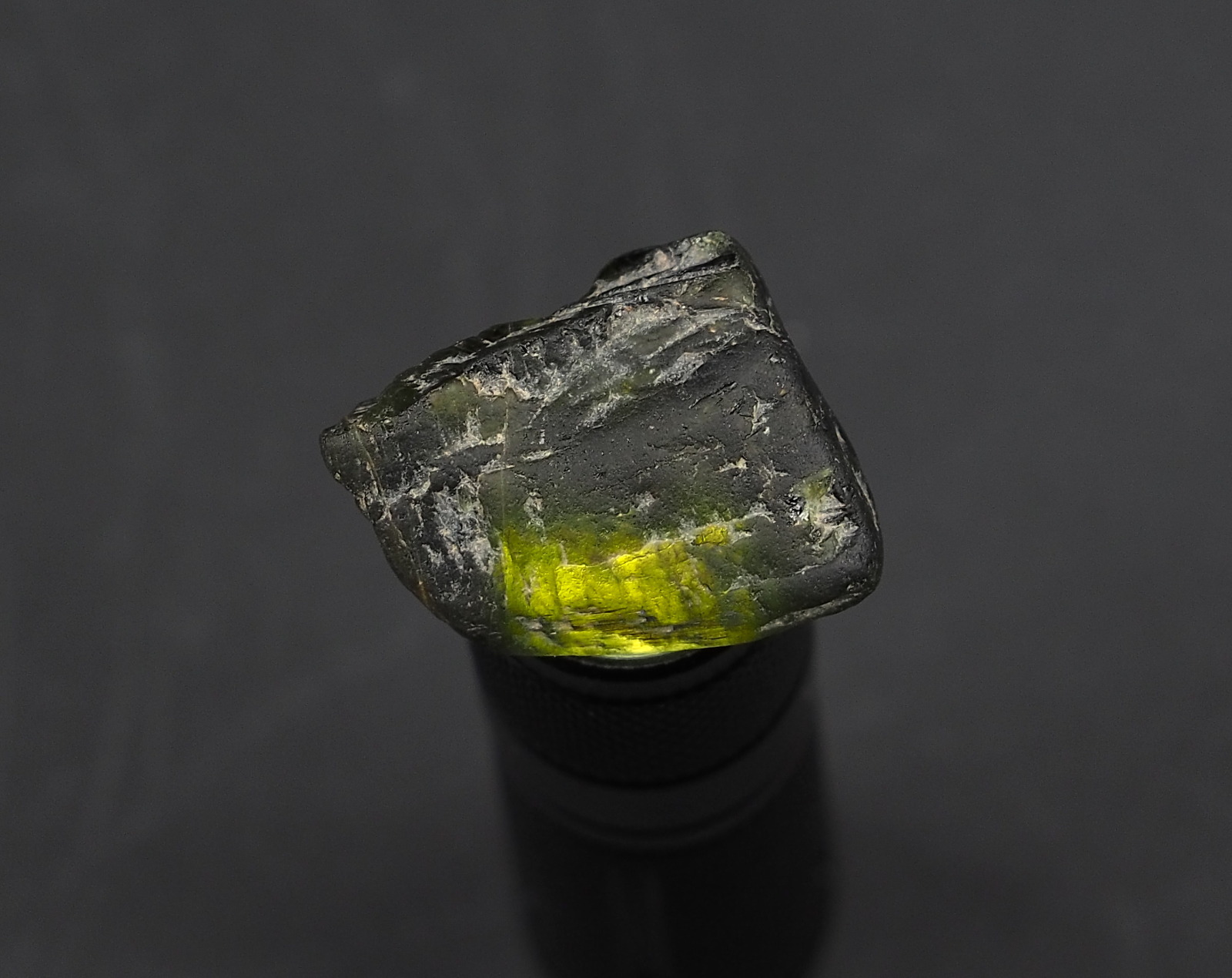 Trieda: Kremičitan /T= 7-7,5 / H=3-3,4 /Zloženie: Na(Mg,Fe,Li,Mn,Al)3Al6(BO3)3Si6.O18(OH,F)4